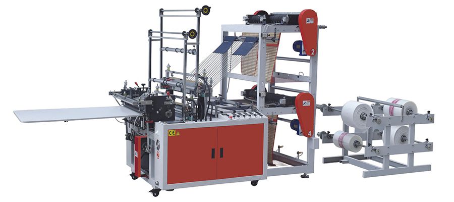Esta máquina para hacer bolsa de sellado térmico y corte en frío de alta velocidad de 4 líneas se utiliza principalmente para producir bolsa camiseta de compras biodegradables y de plástico, así como bolsas planas. El motor de freno de frecuencia fabricado en Taiwán se utiliza como su motor principal, lo que ayuda a reducir el consumo de electricidad y permite el control de velocidad más libremente.