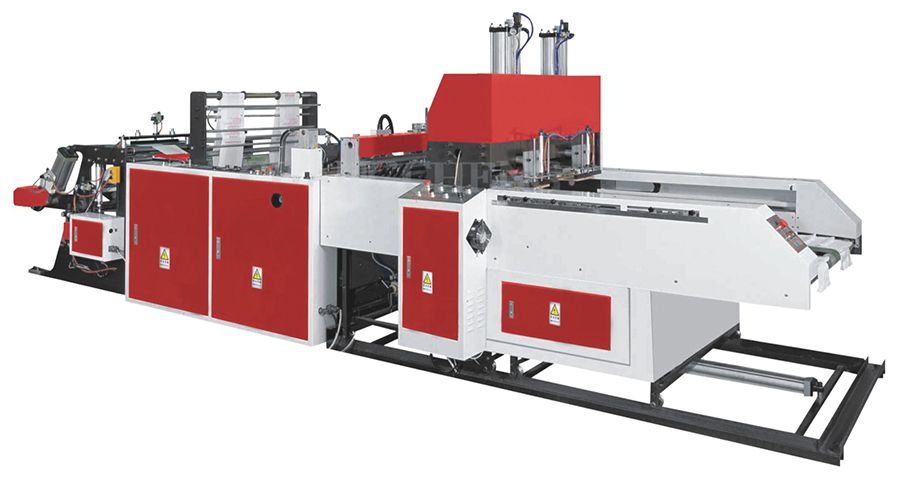 Esta máquina para hacer bolsa camiseta totalmente automática es ideal para producir bolsas camiseta impresas y no impresas hechas de rollos de película HDPE o LDPE. Estas bolsas de plástico son ideales para supermercados y otros entornos minoristas.