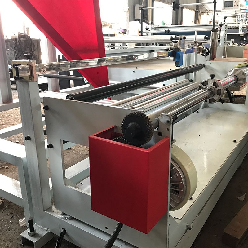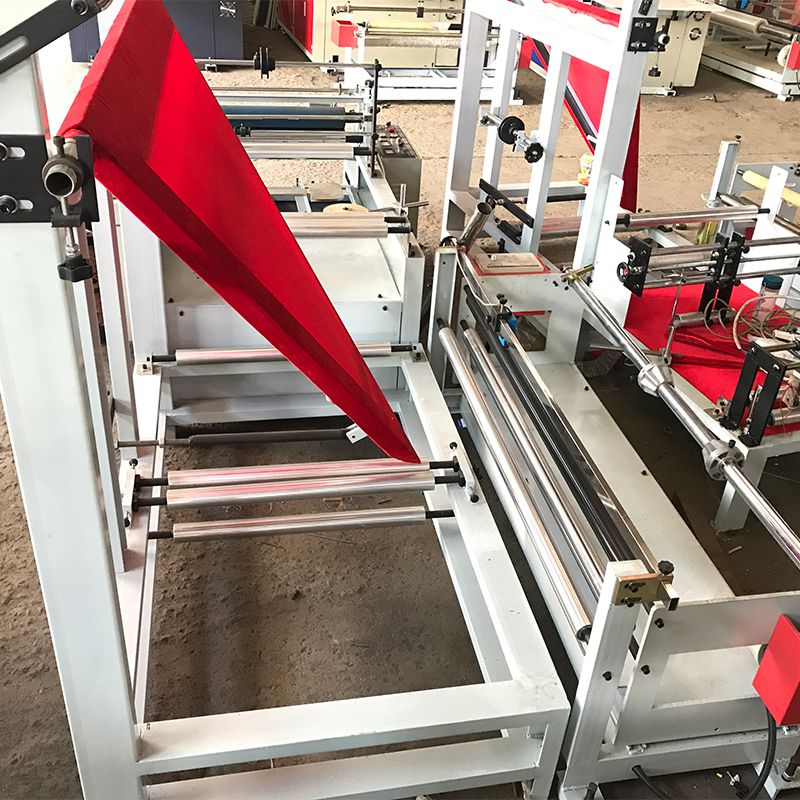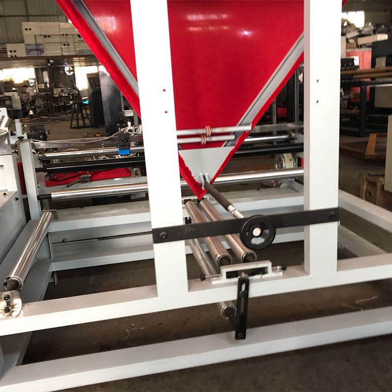 Esta plegadora de dobladillo de plástico es parte de un set de máquinas de corte térmico, diseñado para el plegado BOPP y con pegado automático, refuerzo inferior, inserción de película BOPP perlada y sellado longitudinal junto con un generador ultrasónico y rotura de material de rollo (el mecanismo de rotura se encuentra individualmente).