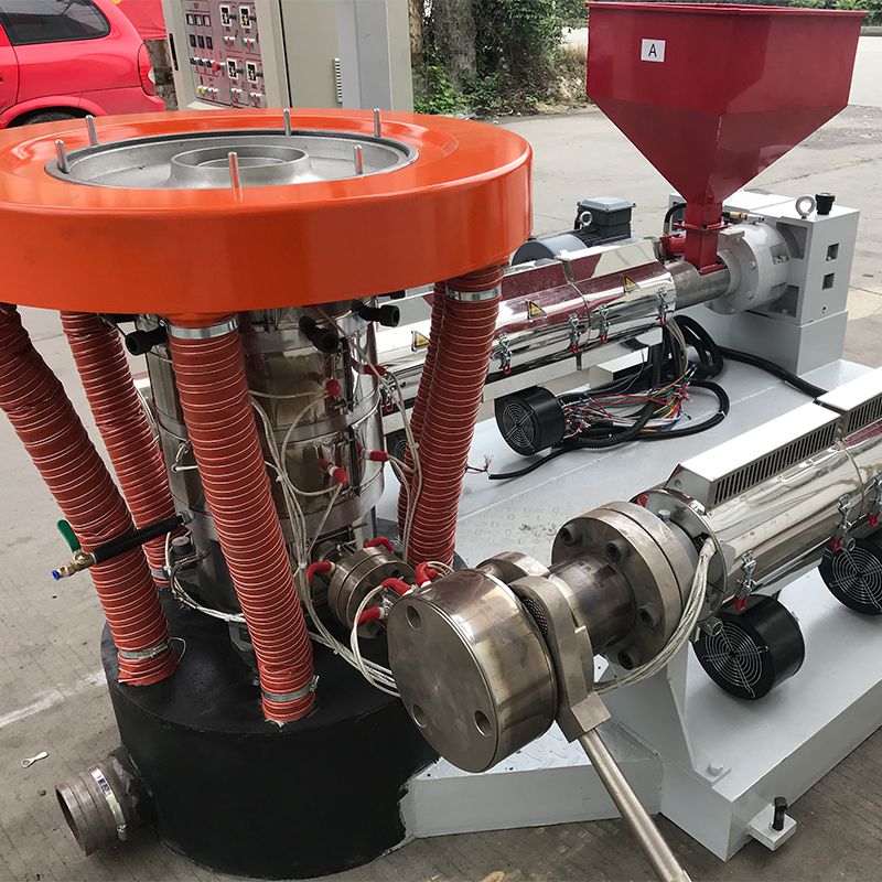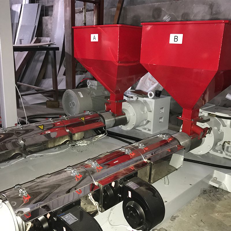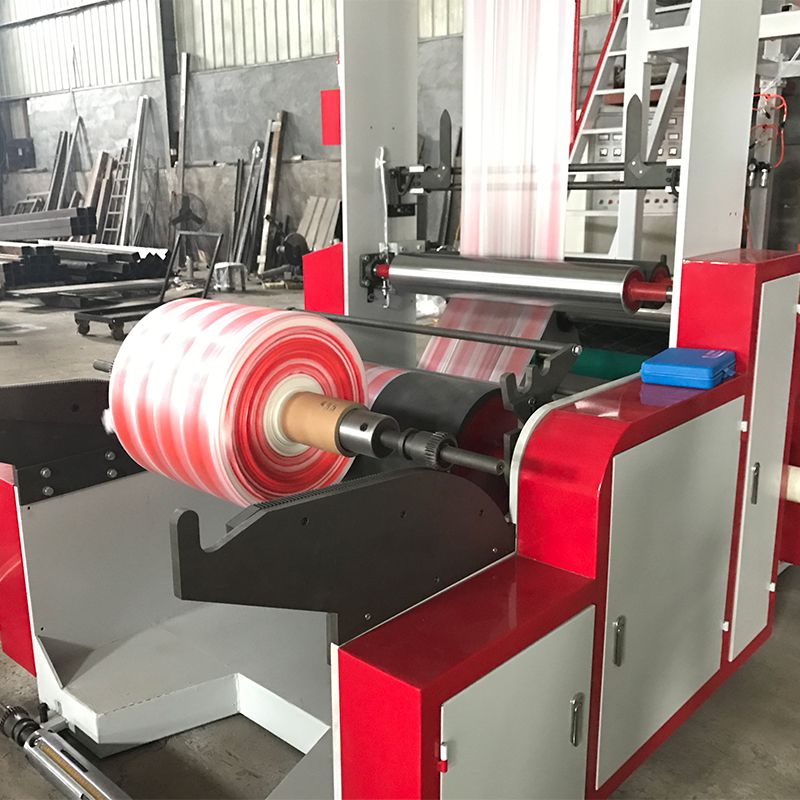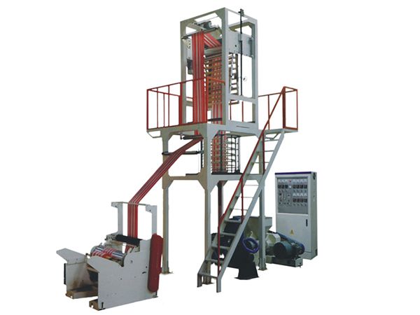 Esta extrusora de película soplada de dos colores es particularmente útil para hacer bolsas de compras, bolsas de embalaje de plástico y cubiertas de mesa. Es capaz de mezclar diferentes rayas de color en el producto de película simplemente cambiando el masterbatch, con dos tornillos que ajustan la velocidad de mezcla de los diferentes materiales.