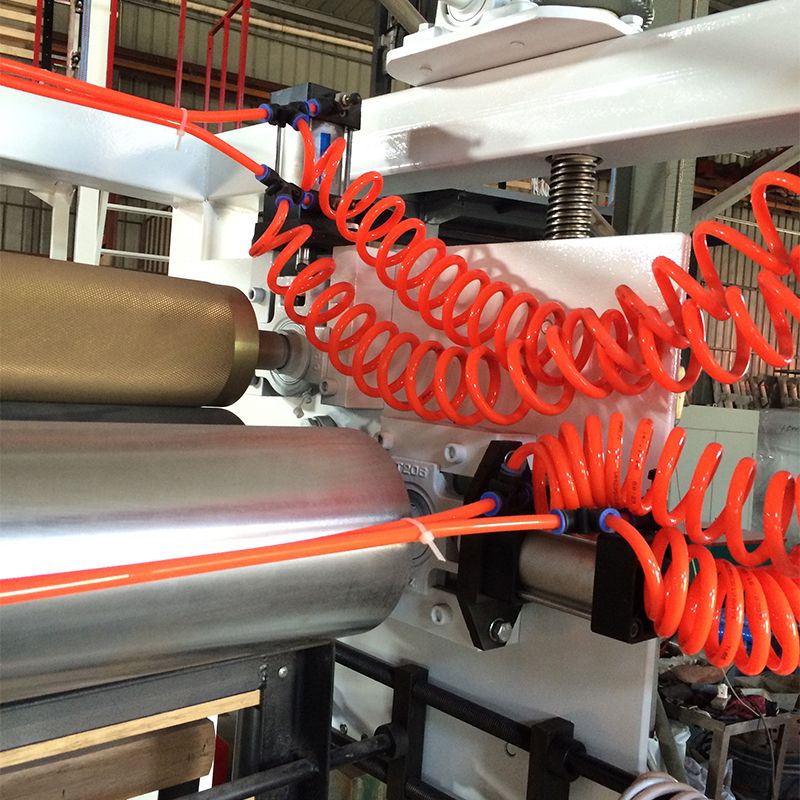 La doble rebobinadora de esta máquina de película soplada está diseñada específicamente para ejecutar materiales de HDPE, LDPE y LLDPE, y el cabezal de matriz rotativa es particularmente adecuado para hacer una película laminada más uniforme cuando se usa LDPE.