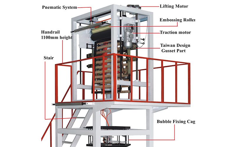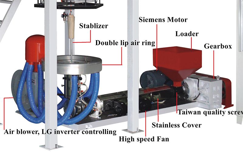 Esta máquina de película soplada de alta velocidad de diseño taiwanés (con doble rebobinador) cuenta con un barril bimetálico y un tornillo que han sido tratados en caliente durante siete días, lo que la hace increíblemente duradera y permite un funcionamiento duradero.